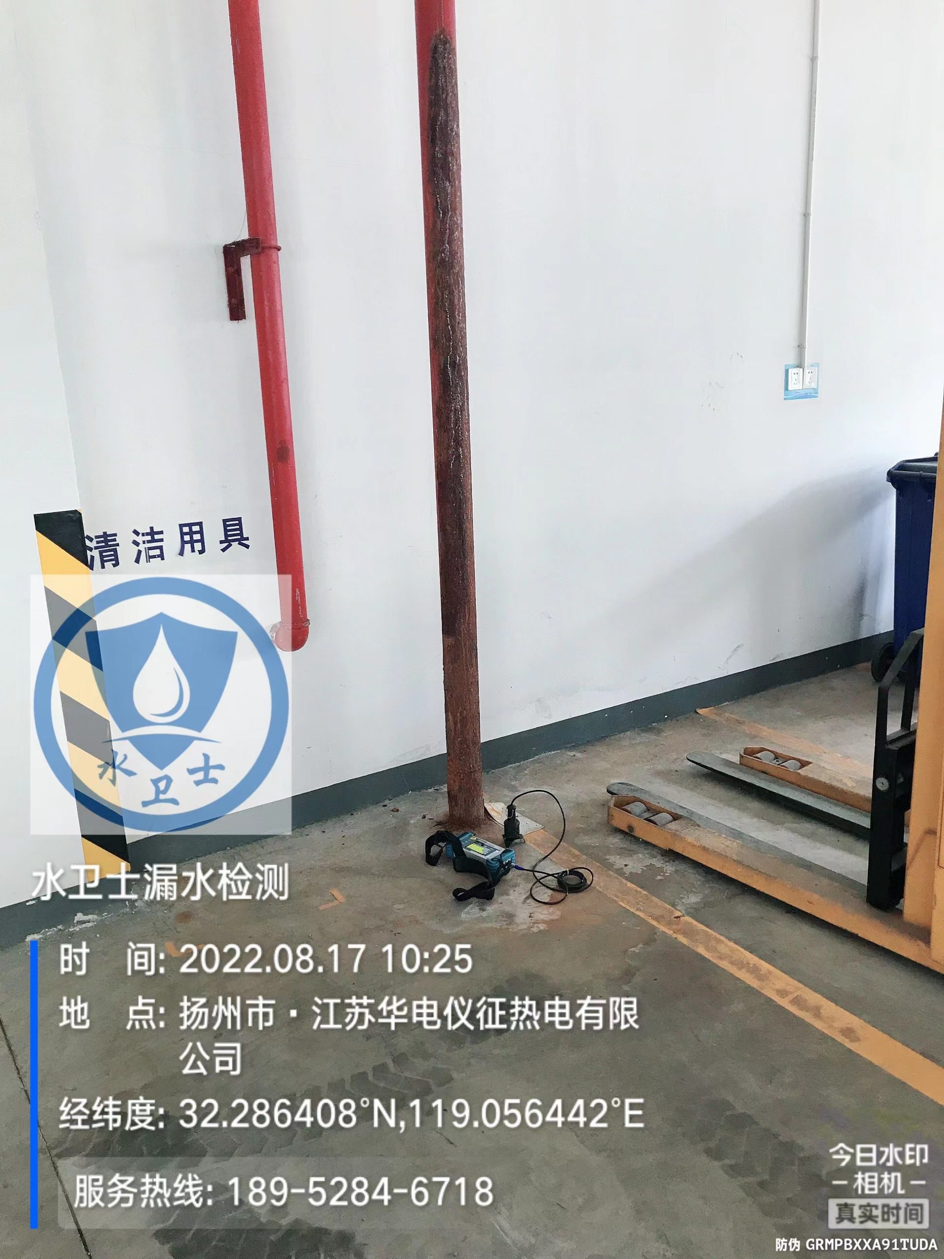 2022年8月17日,江蘇華電儀征熱電有限公司消防管道漏水檢測,本次共檢測。漏水點1處。儀征消防管道漏水探測就找水衛(wèi)士漏水檢測。